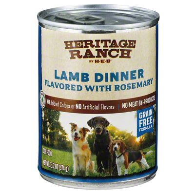 You can also feel great about feeding Heritage Ranch by H-E-BÂ because 1 of the purchase price goes to a Texas Shelter to help feed our homeless pet populationCalorie Content. We feed our little guy Blue Buffalo. H-E-B Heritage Ranch Lamb Dinner Flavored With Rosemary Dog.