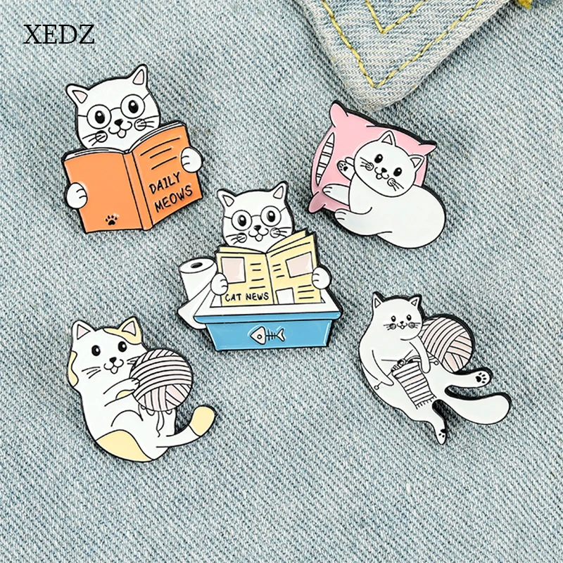 Xedz Cartoon Cat Reading Book Enamel Brooch Cute Animal Playing Ball Pillow Play Game Reading Book Badge Fashion Jewelry Jewelry Brooches Aliexpress